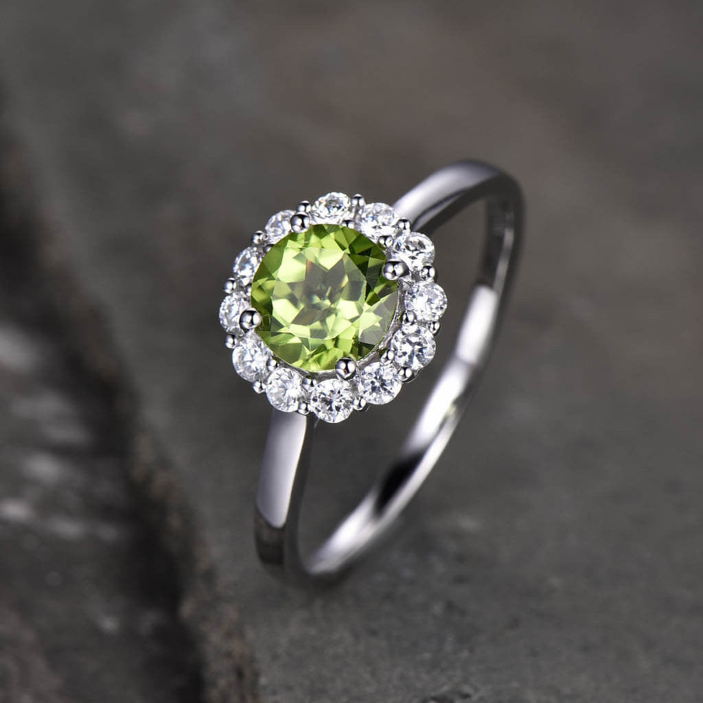 1 Carat Peridot Engagement Ring Floral Moissanite Halo Wedding Ring Vintage Romantic