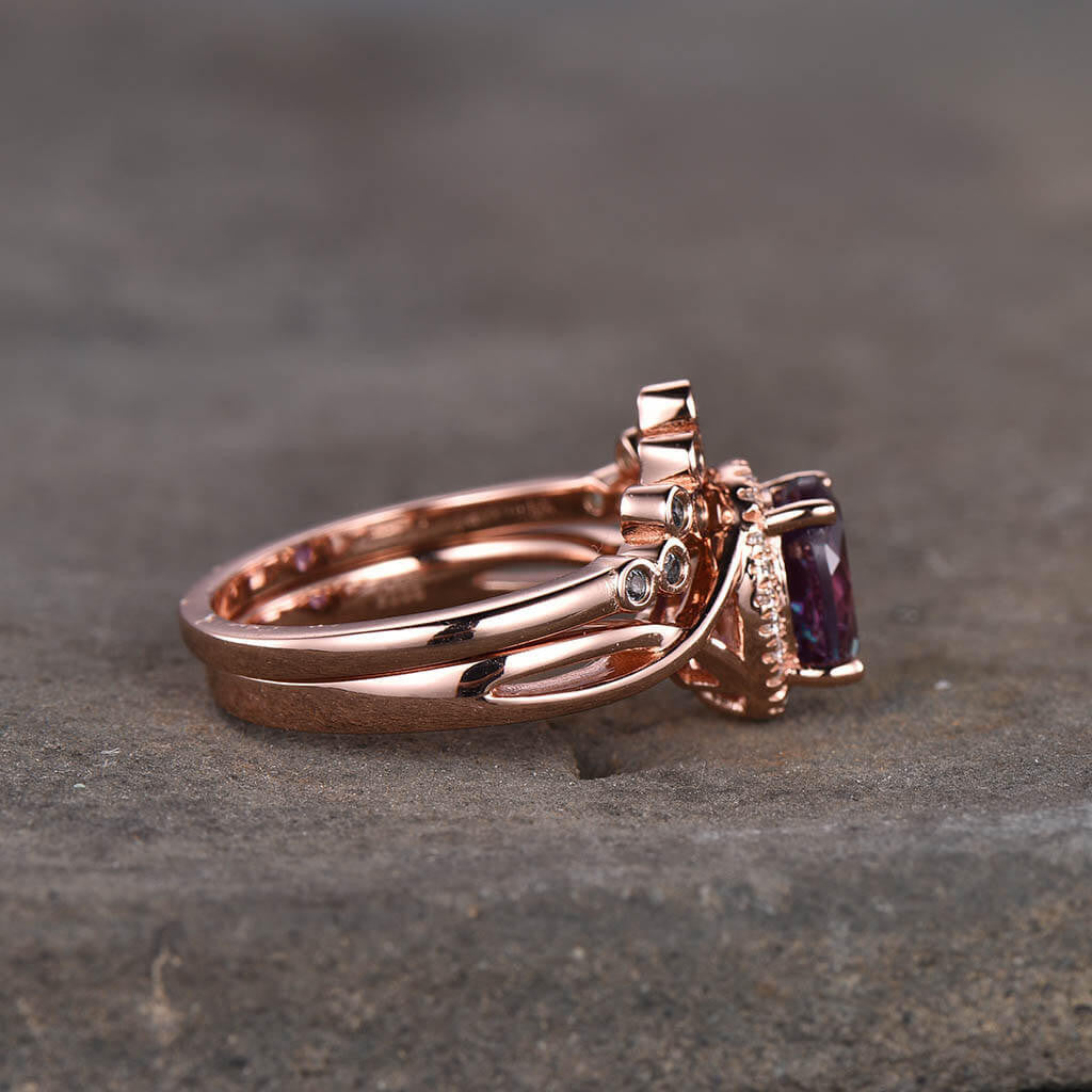 1.2 Carat Infinity Alexandrite Engagement Ring Set London Blue Topaz Matching Band 2pcs