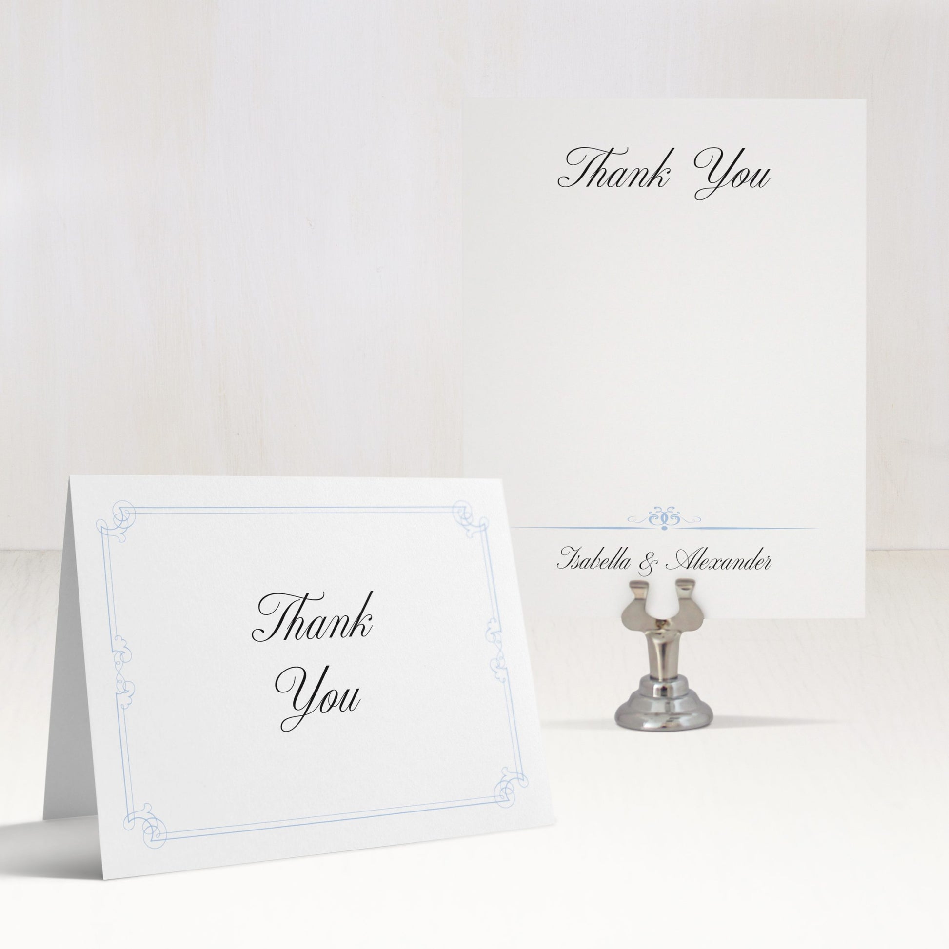 Let your guests know how much you appreciate them! Customize these Elegant Blue Script thank you cards with your own colors and fonts.