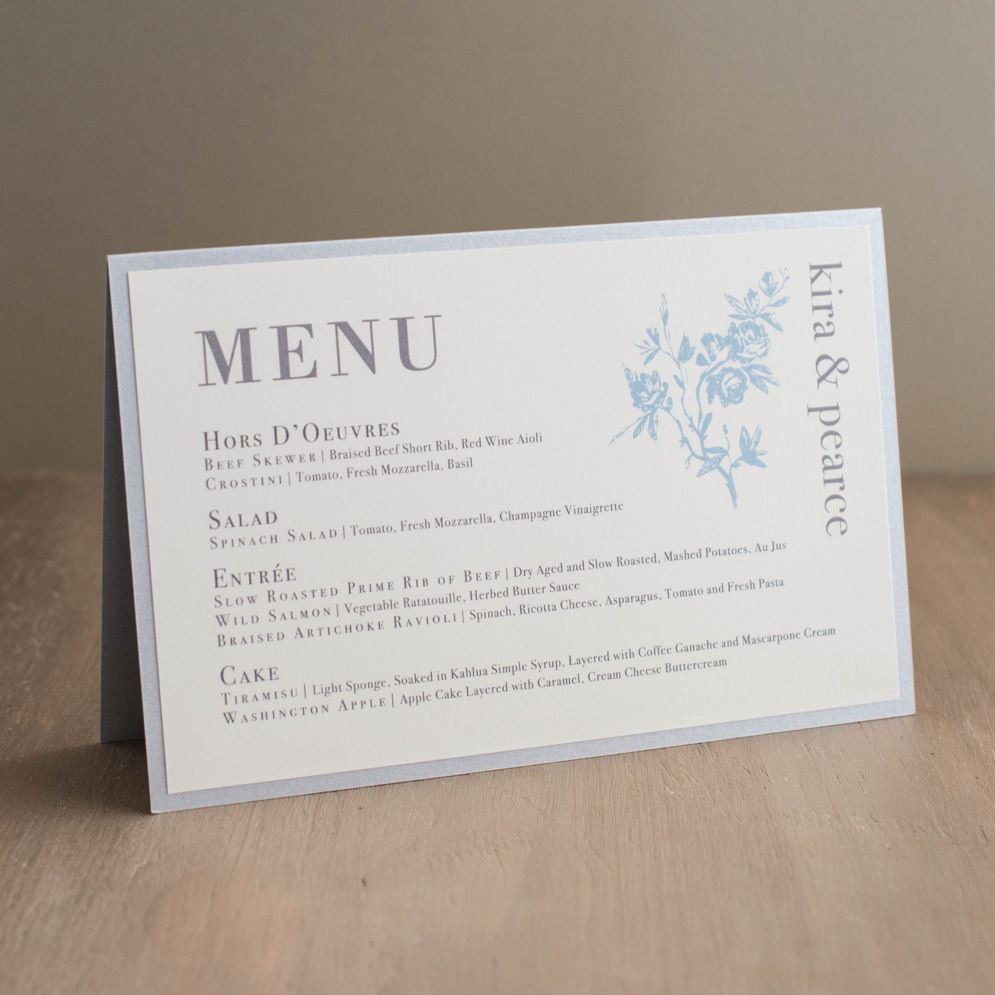 Elegant Blue Tented Menu Cards