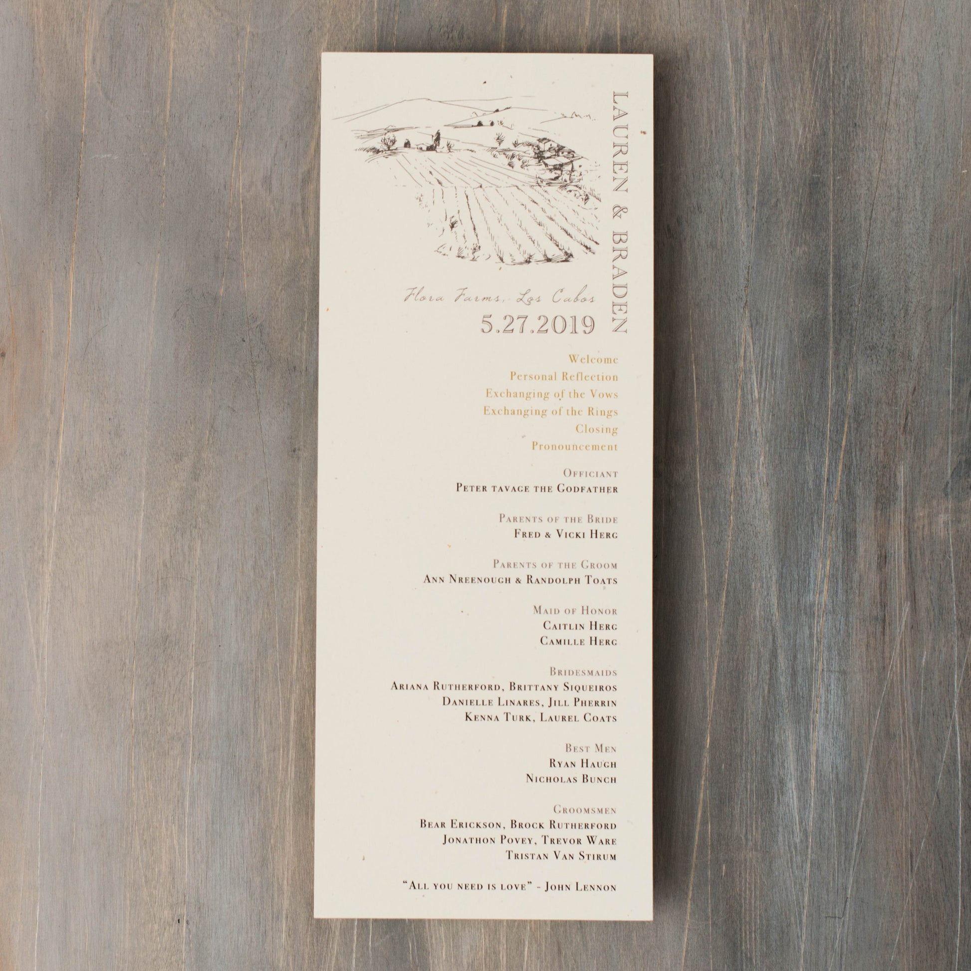 Share the details of your special day with Farm Chic flat ceremony programs. Ceremony programs can be customized to match your wedding invites.