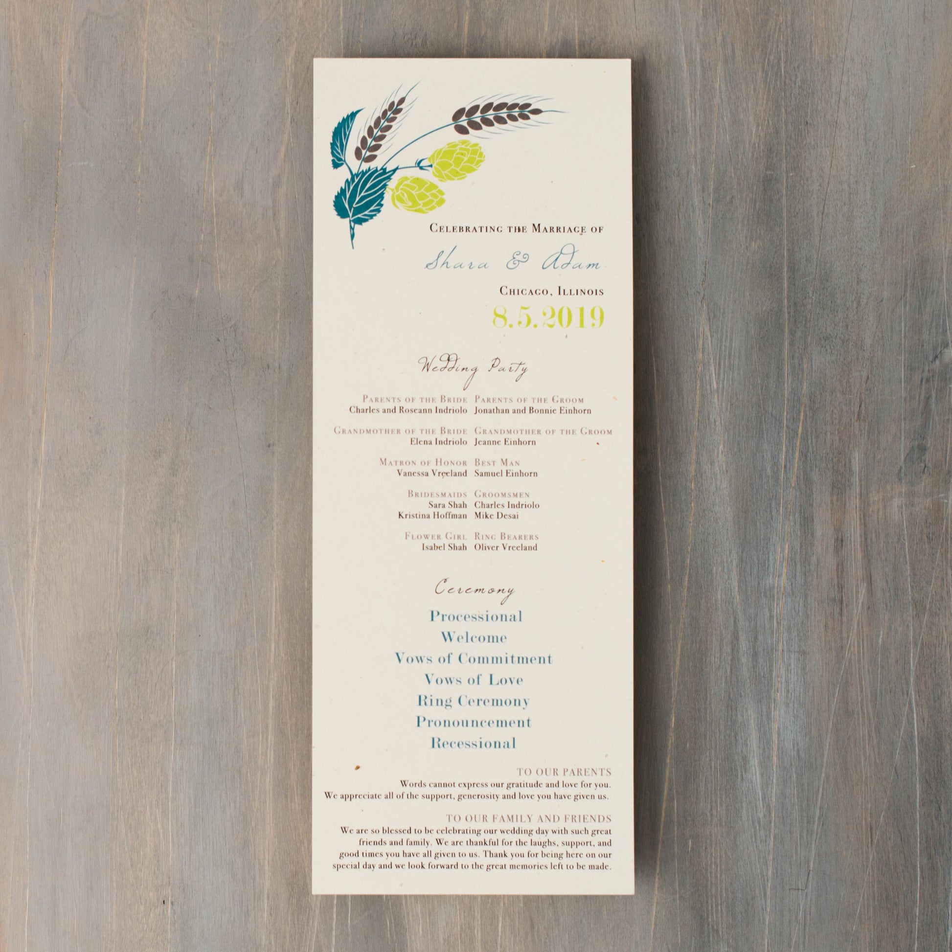 Share the details of your special day with Hops Love flat ceremony programs. Ceremony programs can be customized to match your wedding invites.