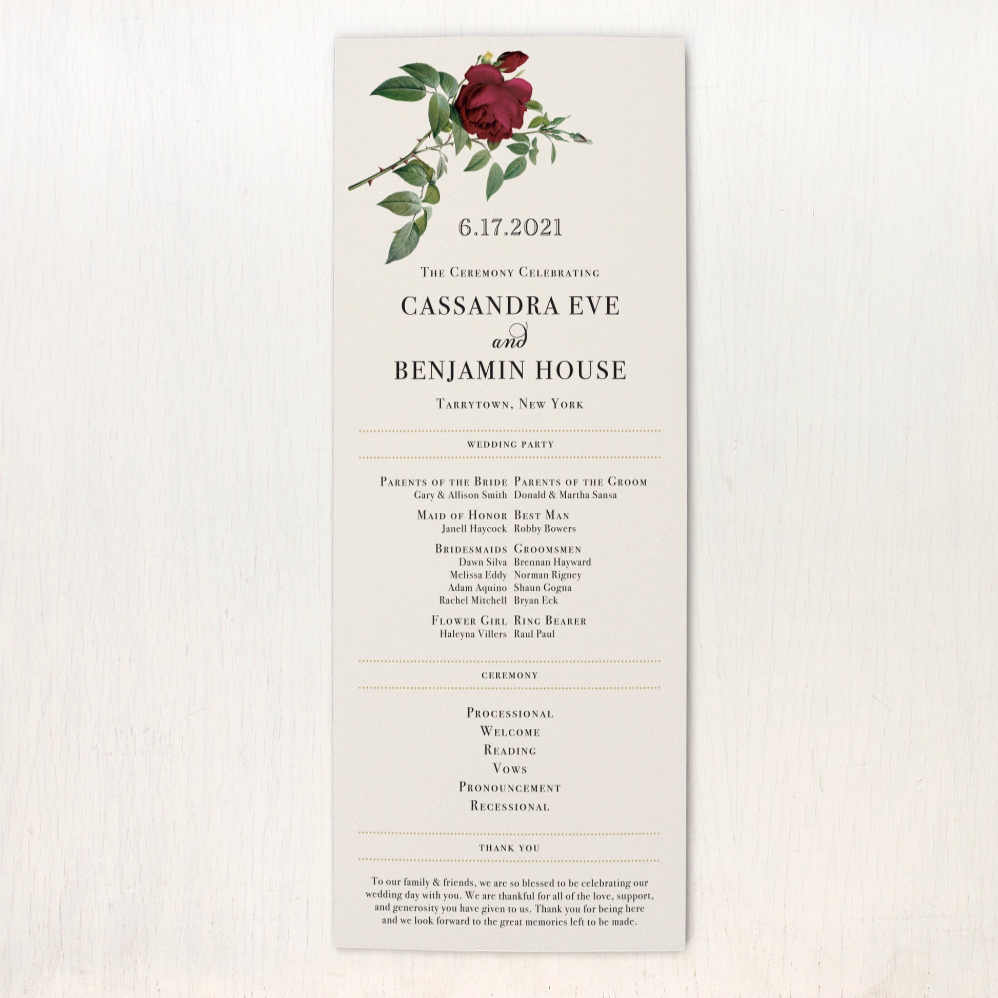 Share the details of your special day with Ivory & Burgundy flat ceremony programs. Ceremony programs can be customized to match your wedding invites.