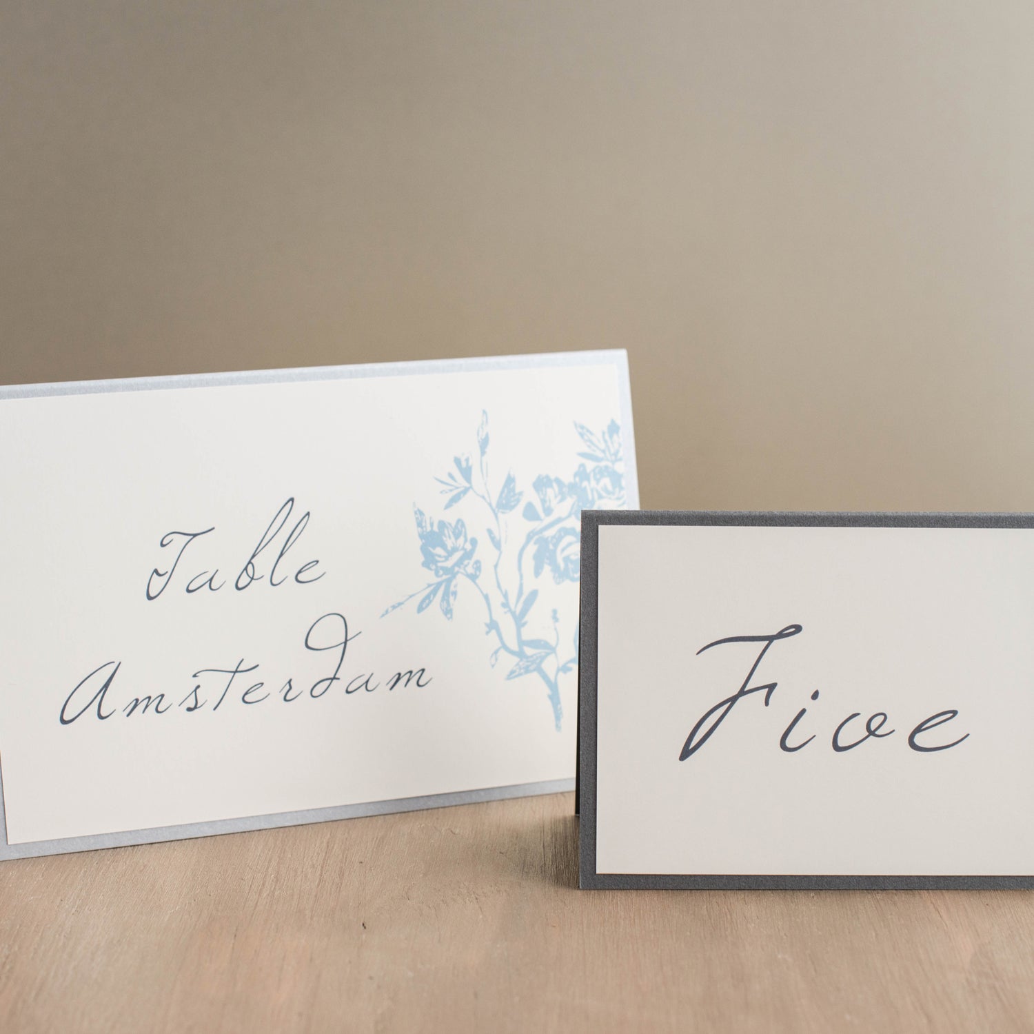 Complete the look with Elegant Blue tented table numbers. These luxury table numbers are double-sided and one can be placed on each table.