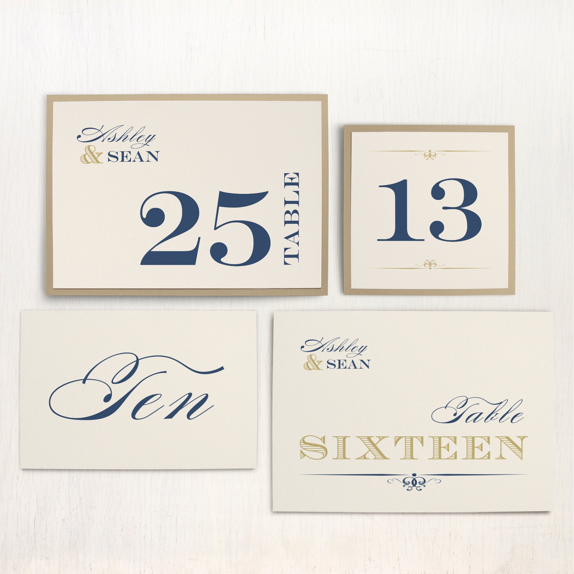 Complete the look with Elegant Navy Script flat table numbers. These lovely table numbers can be framed or mounted in a decorative stand.