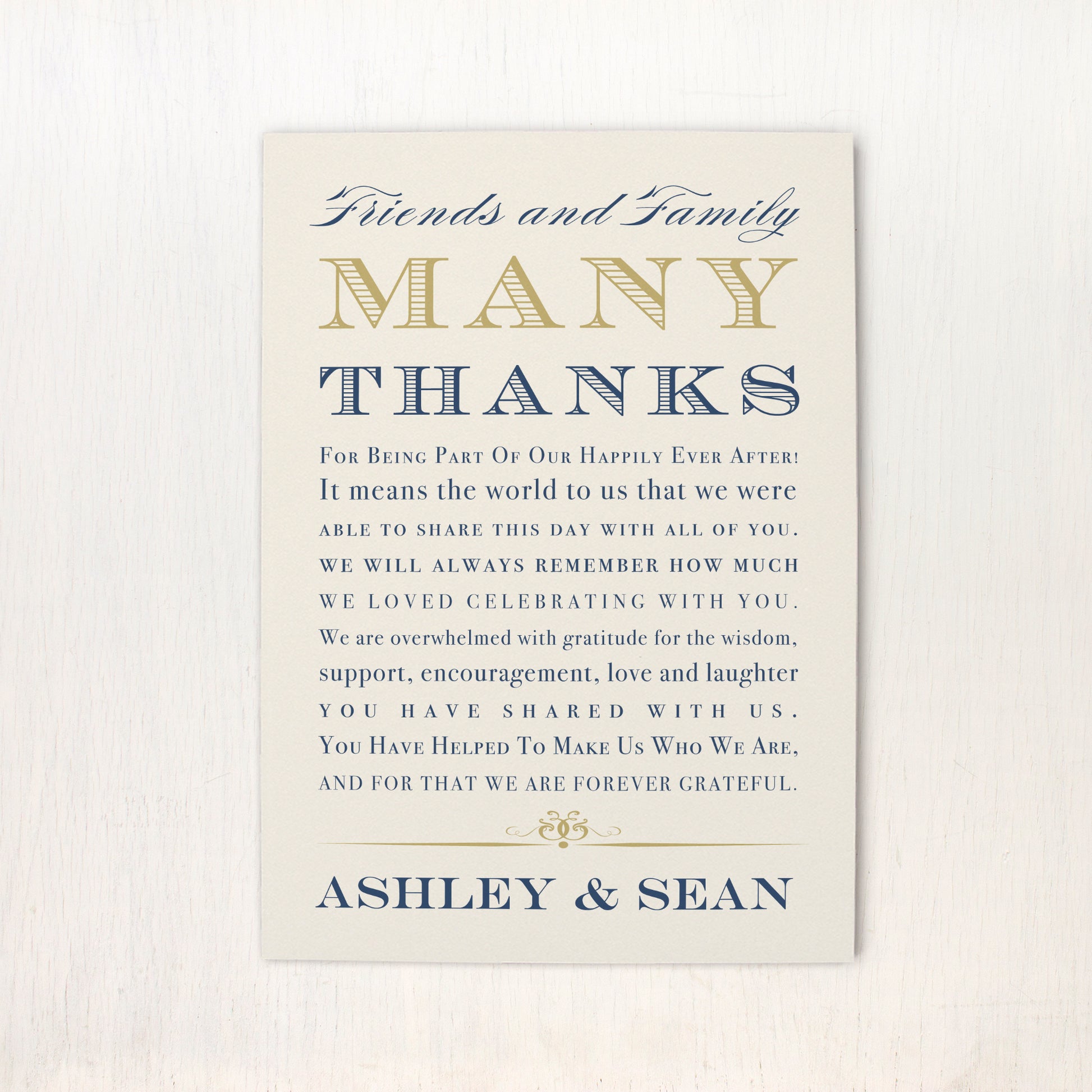 Thank you for being apart of our special day! Place one of these personalized Elegant Navy Script reception thank yous on each plate setting to show guests your appreciation.