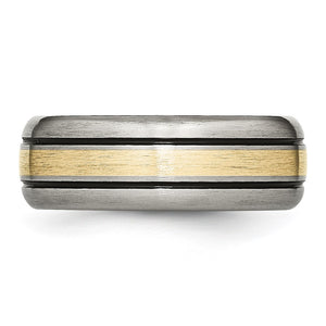 Men's Titanium & 14K Gold Inlay Antiqued/Brushed Grooved Band
