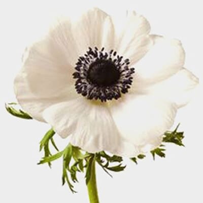 Anemone White W/ Black Eye Flower (50 Stems)