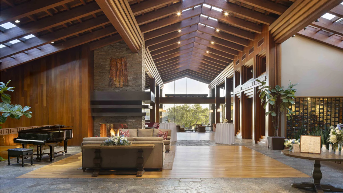 Scenic views meet upscale luxury in this gated South Orange County community. This gorgeous Trabuco Canyon wedding venue offers breathtaking views of Dove Canyon, mountains, and mature trees. From the ceremony underneath a towering 175-year-old oak tree with twinkle lights to cocktails in the upscale lounge with a built-in bar and piano, every moment impresses. Both the lounge and the reception space feature dramatic floor-to-ceiling views, creating a gorgeous backdrop to dance the night away. Dove Canyon promises a memorable experience in the heart of Orange County.