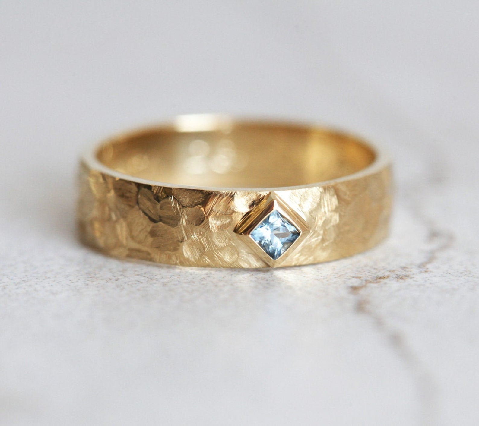 Faceted Gold Ring, 5Mm Industrial Rough Hammered Ring,