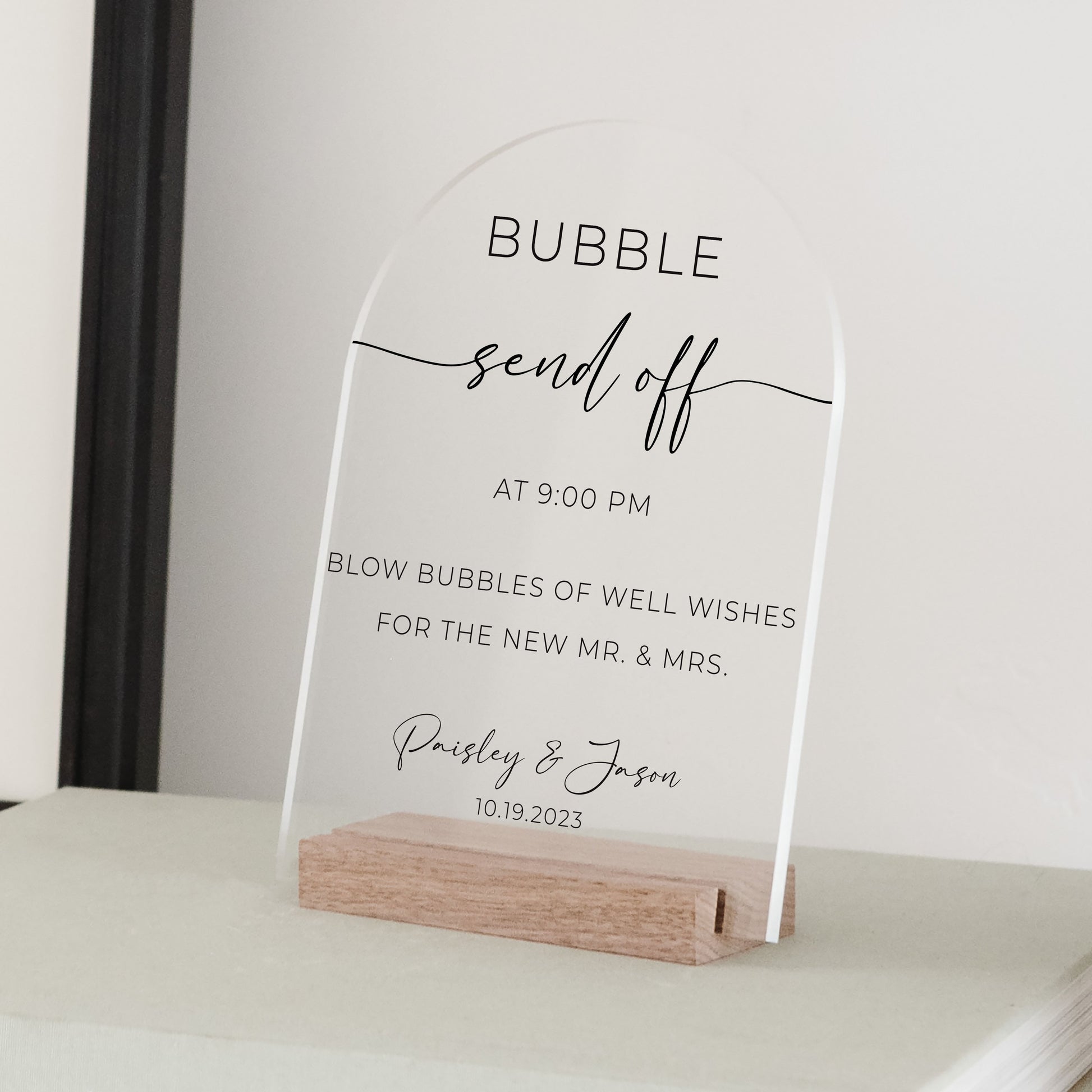 Clear Acrylic Bubble Send Off Sign | Vertical Olivia