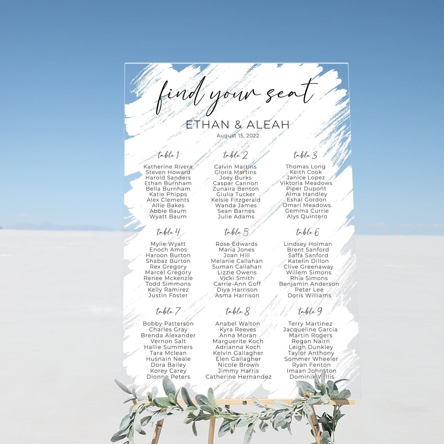 Brushed Acrylic Seating Chart | Vertical Olivia