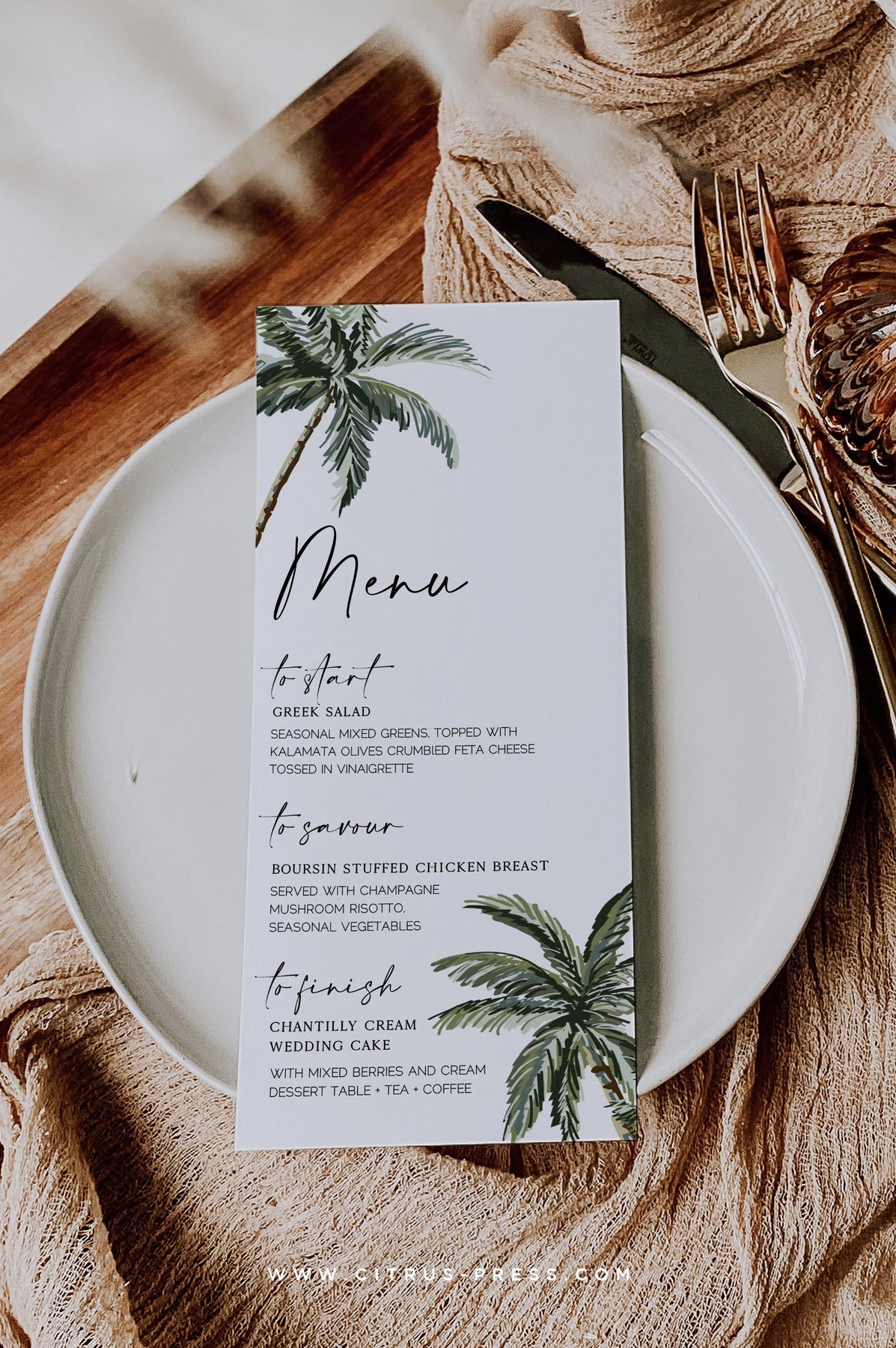 Palm Tree Wedding Menu | Printable Template