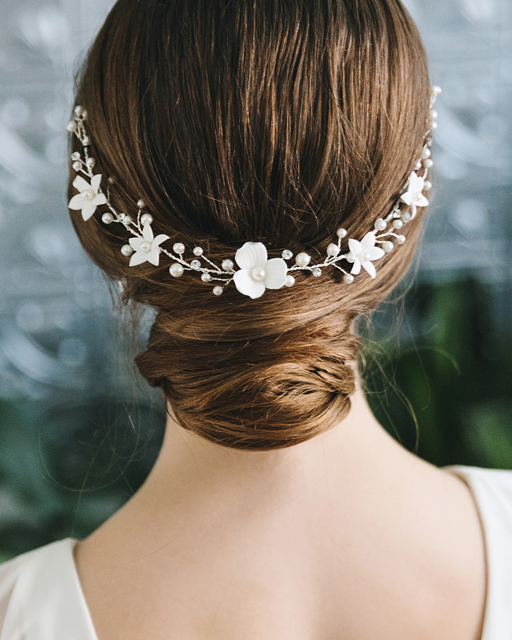 Soft, delicate, and effortlessly romantic—Marigold is designed to mimic the beauty of real flowers, adding a fresh, natural touch to your bridal look. With handcrafted ivory clay blooms, pearls, and crystals, this piece is beautifully understated yet unforgettable.