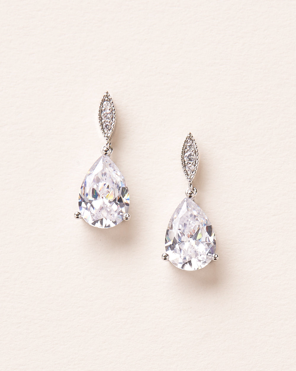 Perfectly sweet and effortlessly chic, the Callie Earrings feature a bold pear-cut cubic zirconia that catches the light beautifully with every movement. A timeless design with just the right amount of sparkle for brides, bridesmaids, or any special occasion.