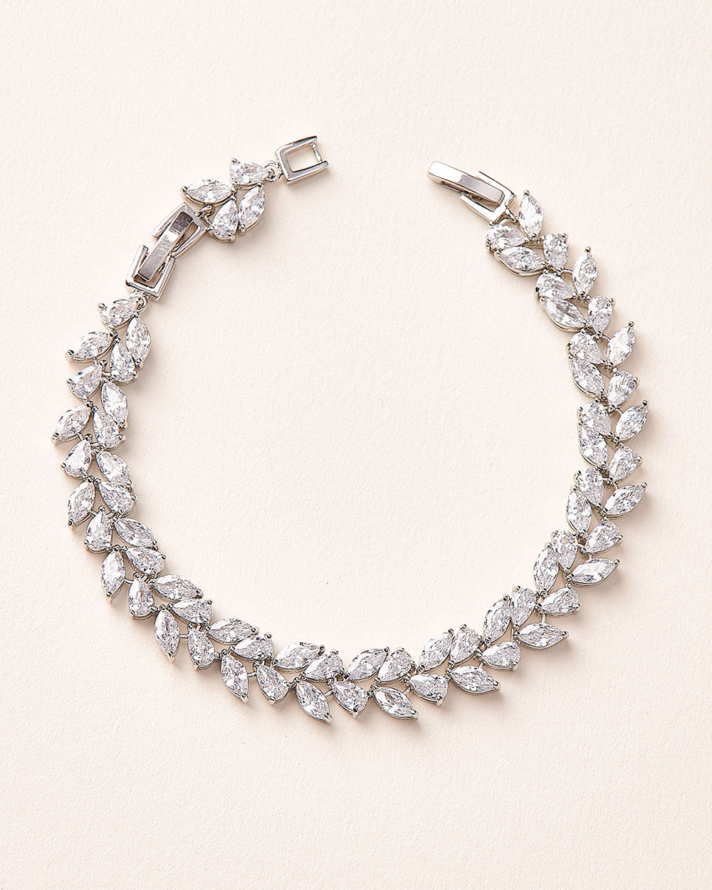 Designed for effortless elegance, the Thalia CZ Bracelet features delicate marquise-cut cubic zirconia stones that cascade into a refined floral-inspired pattern. Simple yet bold, this sparkling piece is the perfect finishing touch for any special occasion.