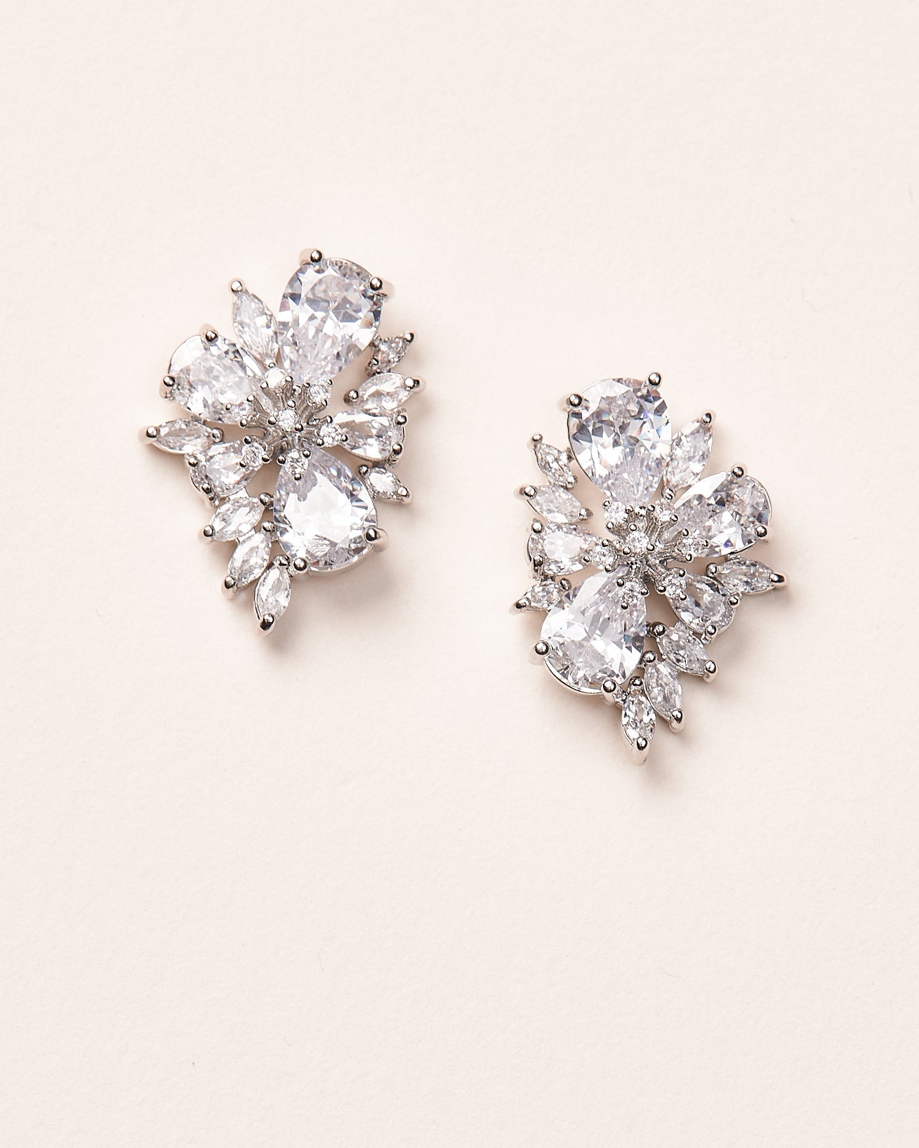 Modern yet timeless, the Ellen CZ Cluster Studs are designed to resemble delicate flowers, shimmering with brilliant cubic zirconia stones. With a sophisticated cluster design that sparkles like real diamonds, these earrings add the perfect touch of elegance to any bridal or special occasion look.