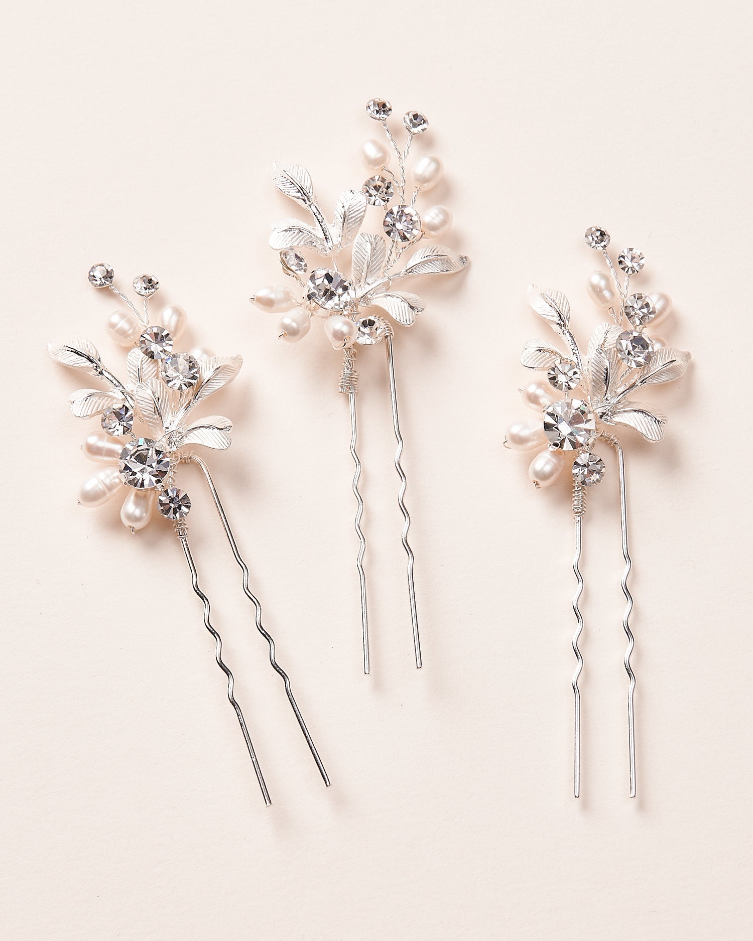 Freshwater Pearl & Crystal Hair Pins (Set of 3)