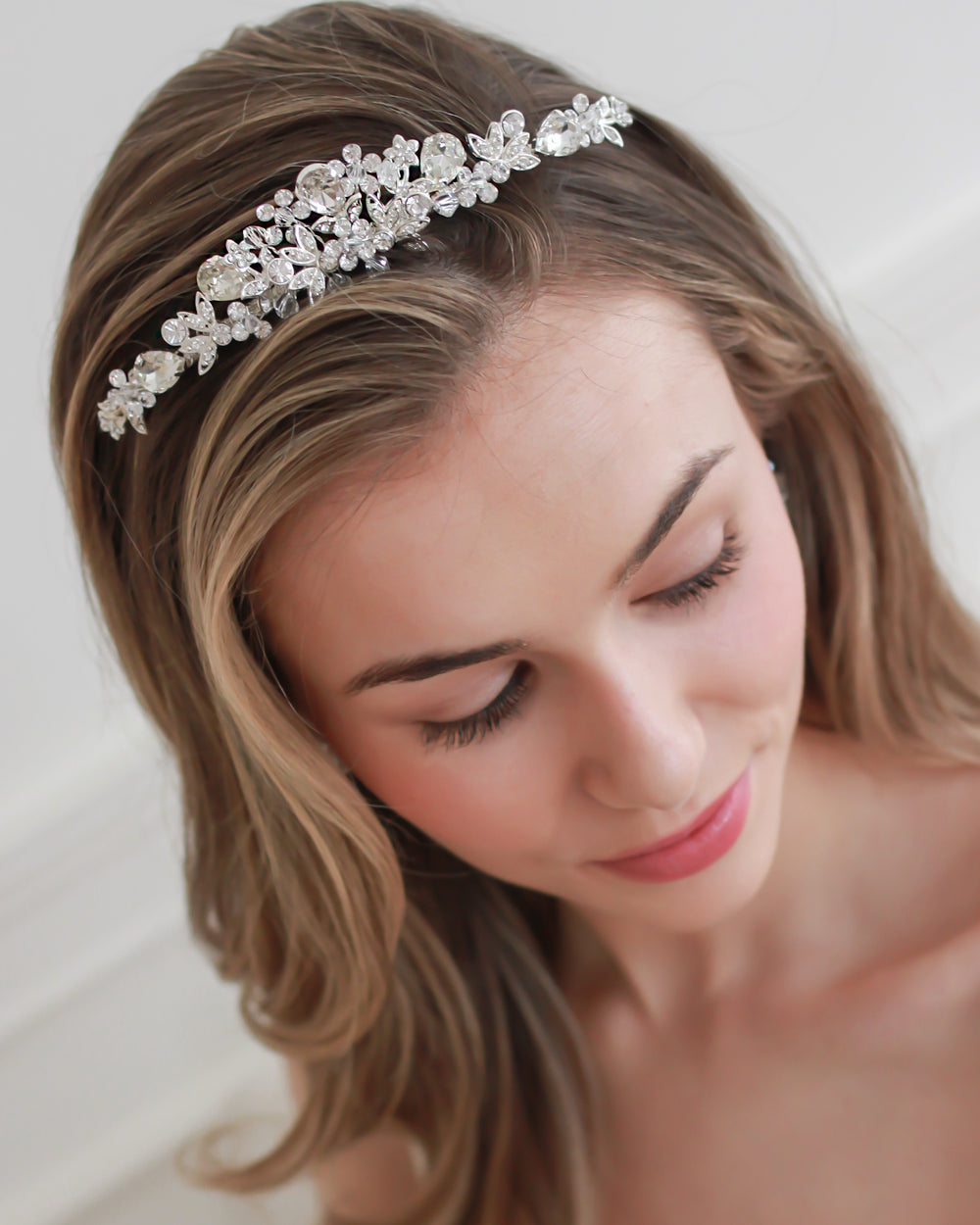 Petite, floral, and full of sparkle—Nicolette is the perfect finishing touch for your bridal look. Designed to shimmer from every angle, this delicate tiara blends timeless elegance with modern romance. Lightweight and effortlessly wearable, it adds just the right amount of regal charm.