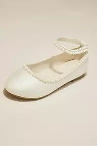 Flower Girl Ballet Flats with Pearl Ankle Strap