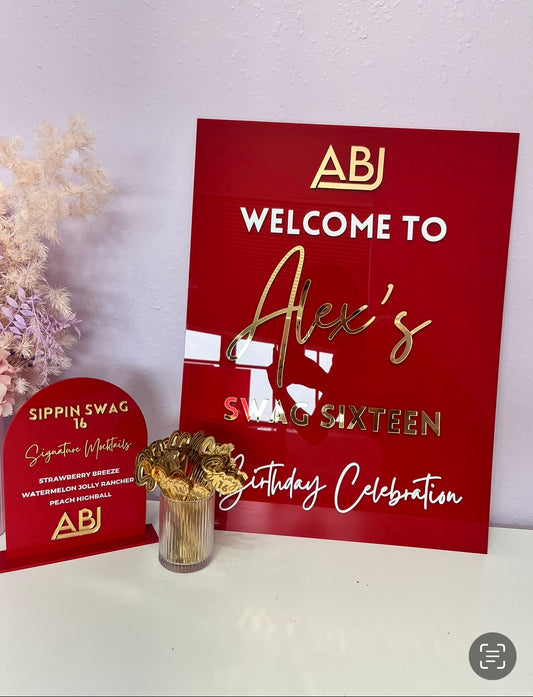 Welcome sign, 20 drink stirrers and bar sign bundle.