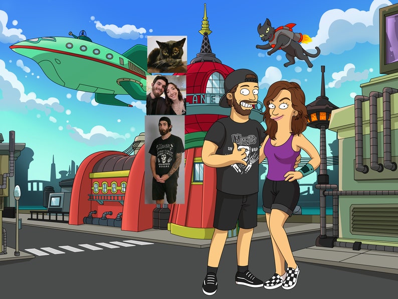 Futurama Portrait , Custom Family Portrait , Custom Couple Portrait , Anniversary Gift, Custom Portrait, Birthday, Xmas Gift, Christmas Gift