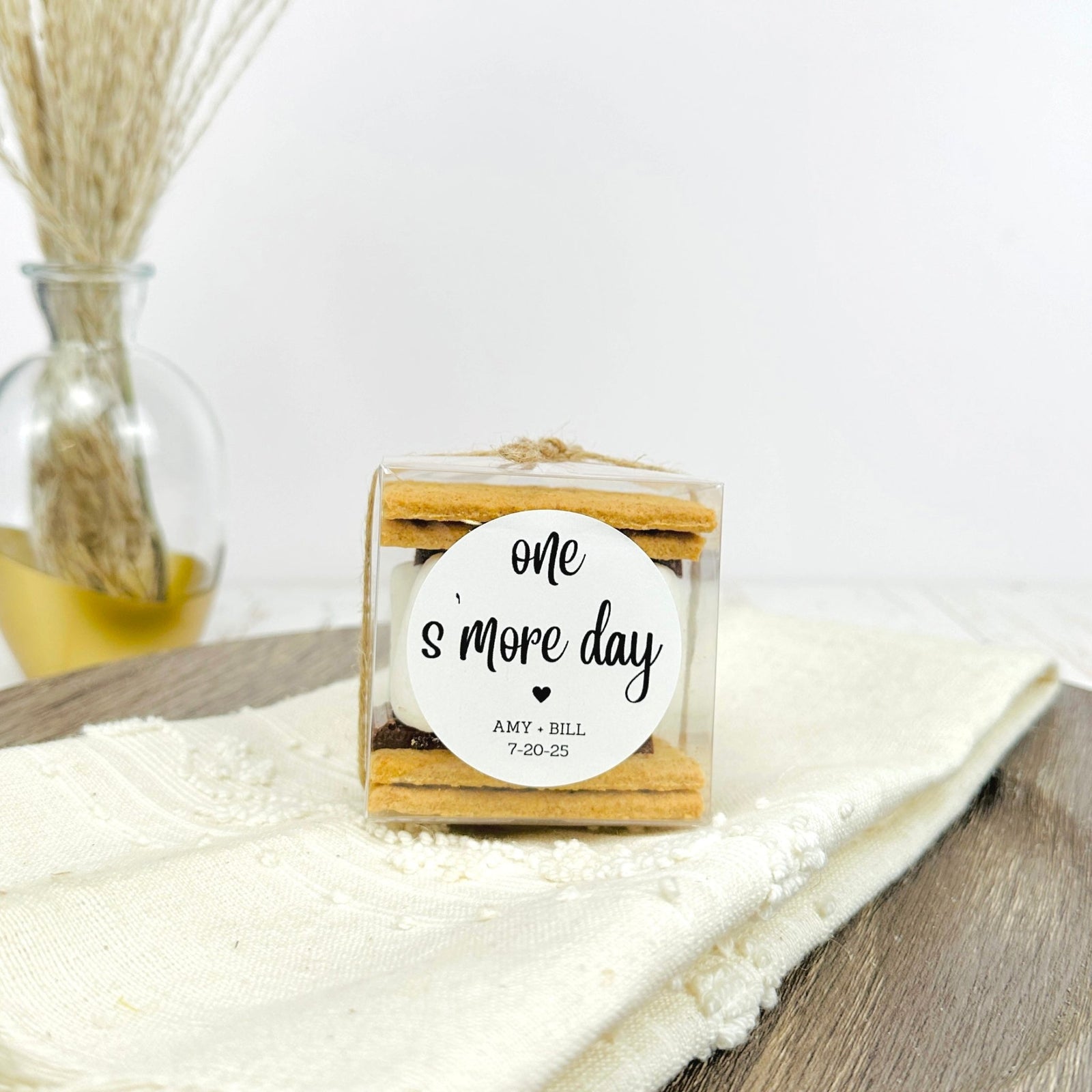 Get ready for a delectable adventure with our adorable MarshmallowMagic Favor! Our favor is perfect for sharing moments of pure joy and warmth with your loved ones. Each package is crafted with love andcan be filled with all the essentials for creating scrumptious s'mores. Whether it's a wedding, birthday, or cozy gathering, this charming favor will leave a lasting impression on your guests. Bring smiles, laughter, and the delightful taste of nostalgia to your special occasion with our irresistibleMarshmallow Magic Favor Box! How To Personalize: Names:Amy + Bill Date:7-20-25 Details: 2.5"x2.5"x2.5" Made with premium quality PVC Comes with twine Perfect for any occasion, fill with candy, snacks, or treats