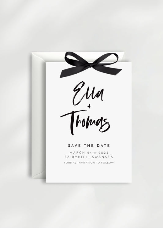 Includes a save the date card (double layered) and ribbon. Your save the dates will arrive unassembled. Size: A6 (105mm x 148mm).