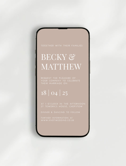 This template is perfect for you if you're looking for an easy to edit digital download e-invite. You will edit and personalise our template design in an easy to use program before downloading and being able to send directly to your loved ones from your phone. In addition to the details of your day, you can go further and personalise this template by changing the colours of the fonts and background.