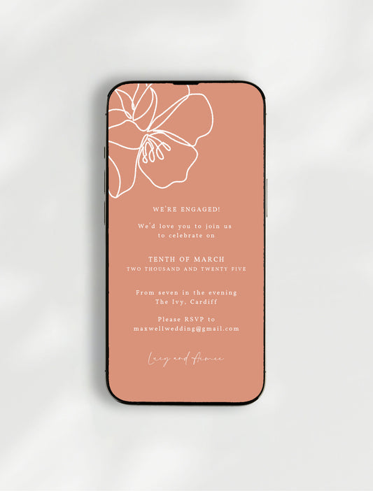 This template is perfect for you if you're looking for an easy to edit digital download e-invite. You will edit and personalise our template design in an easy to use program before downloading and being able to send directly to your loved ones from your phone. In addition to the details of your day, you can go further and personalise this template by changing the colours of the fonts and background.