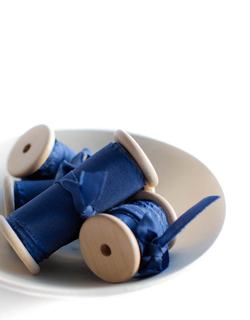 Our seamless hand dyed ribbons are often blends of many pigments, resulting in a complex yet subtle interplay of nuances. Every step of our ribbon process is by hand, from dyeing, to tearing into ribbon widths, fraying and then pressing. Our hand frayed ribbon ensures the softest edge possible.