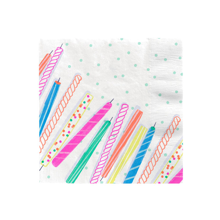 Complement drinks or dessert with a touch of birthday candle style in these dinner napkins. Pack of 16 large napkins featuring a scattered row of birthday candles in fun designs on white makes a great choice for birthday parties, dessert buffets and more.