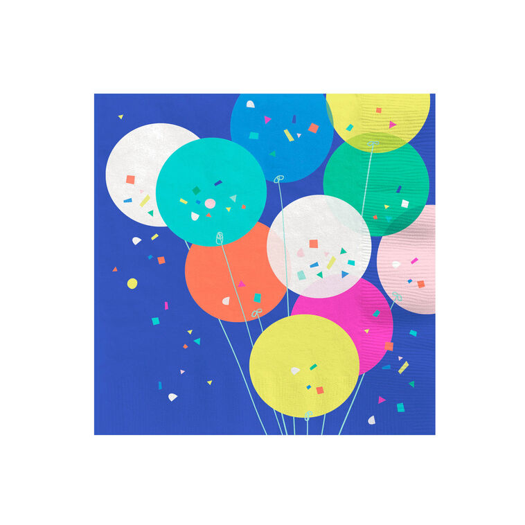 Get festive with these bright dinner napkins featuring a fun design of balloons and confetti on blue. These large paper napkins make a great choice for birthday parties, anniversary celebrations, graduations and more.