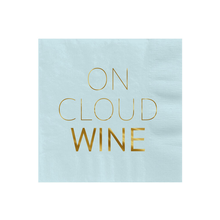 Enjoy a cabernet, pinot or other bottled bliss with these light blue cocktail napkins that proclaim you're "on cloud wine" in gold foil lettering. These paper napkins go great with wine for girls' night out, bachelorette parties, engagement celebrations and more.