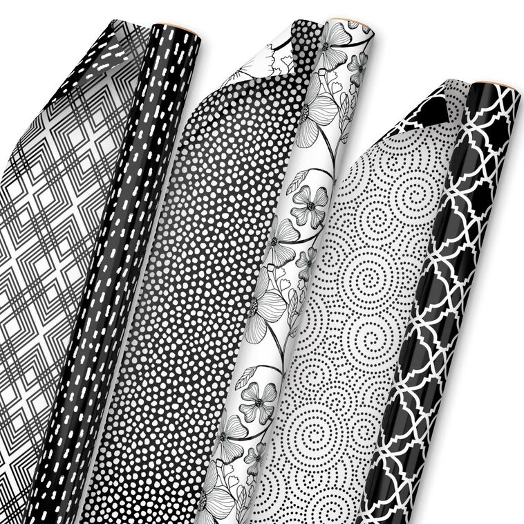 Black and White Prints 3-Pack Reversible Wrapping Paper, 75 sq. ft. total