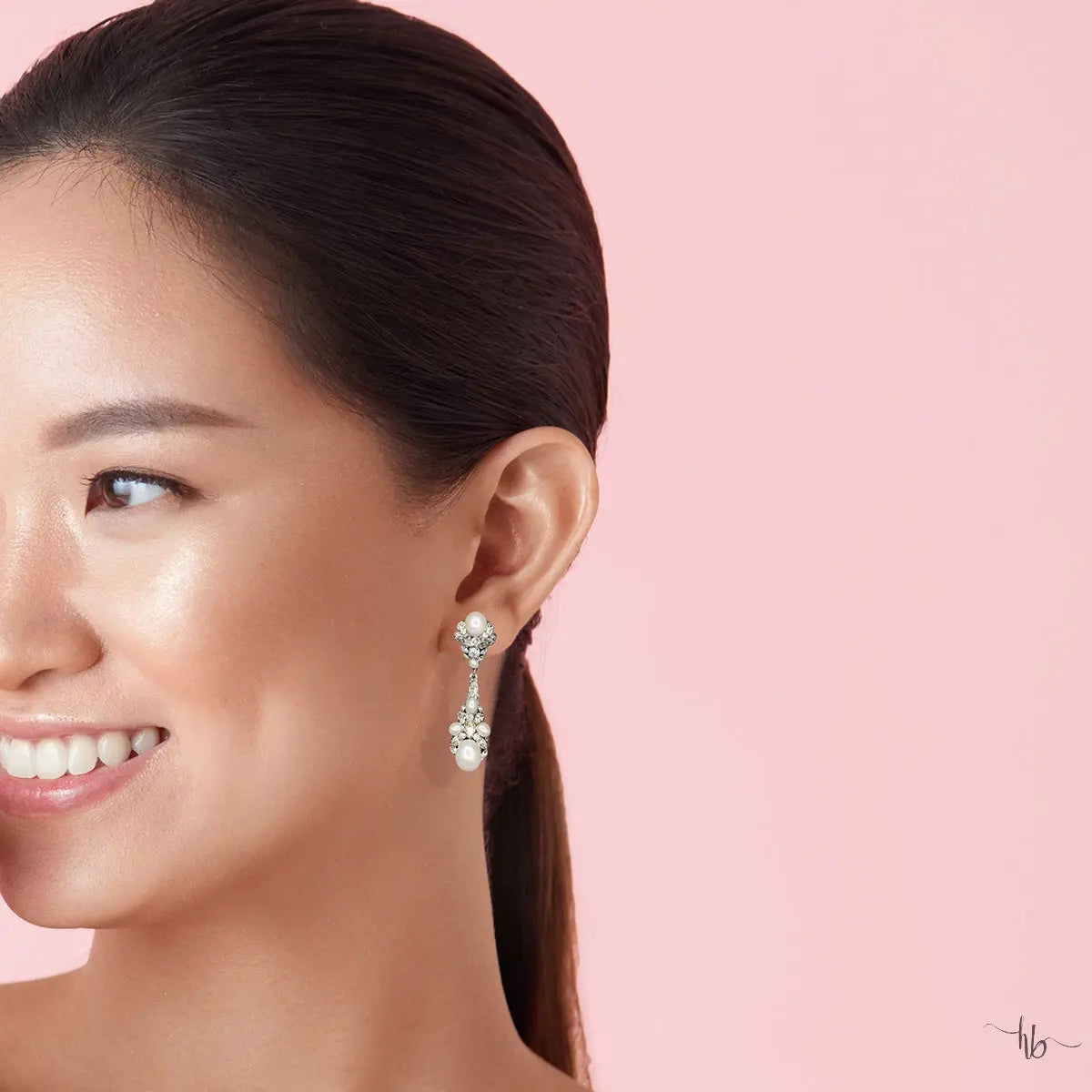 Freshwater Pearl drop chandelier earrings with Austrian crystalRhinestones. Measure sat 2". Pave French Hook.