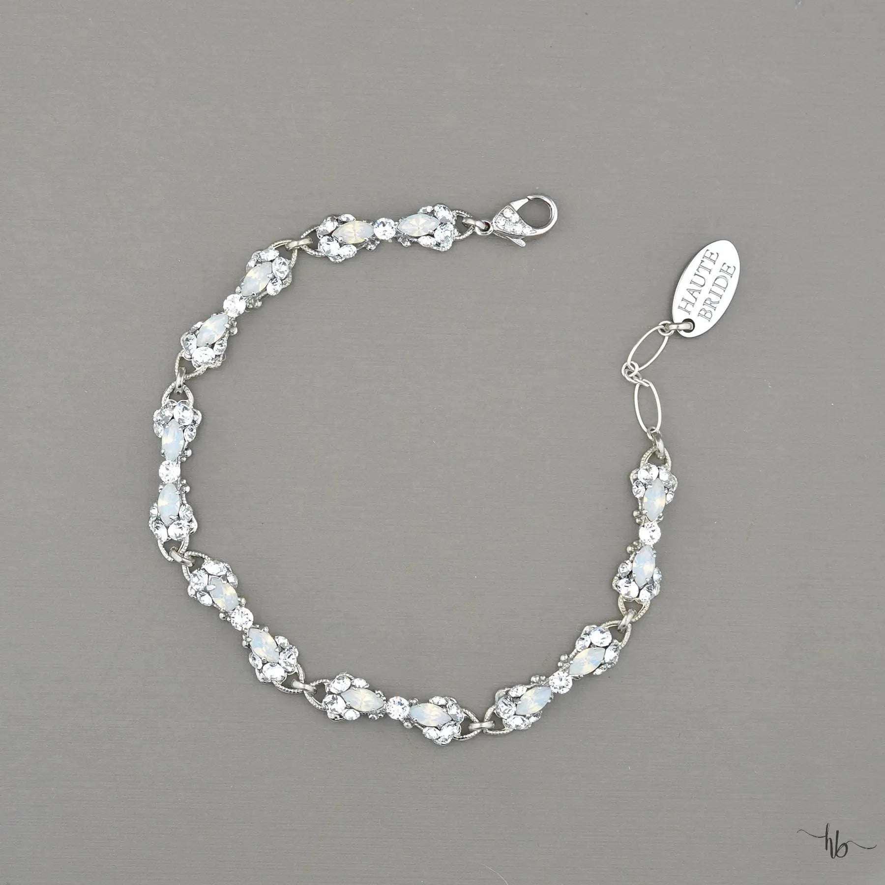Designed with rhinestone shaped bow tie filigree. One of our favorite petite Bridal Bracelets!