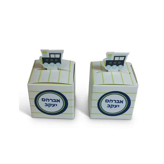If you plan to gift guests small favors at your baby shower or birthday party, you'll want to make a big impression! Kate Aspen's Precious Cargo Train Favor Box uses a simple white and green striped motif with a cute little train on top, and the size is perfect for gifting candies and other little goodies to the guests to come and share your special day. Made from sturdy card stock and sold in sets of 24, you'll love what these transportation themed favor boxes can add to your party! Features and facts:White card stock favor box with green stripes, and dark blue, light blue and green diecut train Sold in sets of 24 Measures without train: 2.1" w x 2.15" h x 2.1" d; Measures with train: 2.1" w x 3.3" h x 2.1" d Boxes ship flat - some assembly required