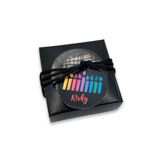 Mini Chocolate Donut In Black Box With Personalized Menorah Tag