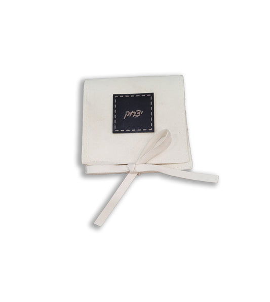 Cream Mini Pidyon Haben Suede Pouch With Personalized Leather Tag (More Colors Available)