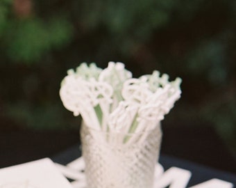 Monogram stirrers, custom Initial Swizzle Stick,Perfect Weddings,Bridal Shower,Engagement Party, Stir Sticks,logo cocktail,Laser Cut,20 Pack Shown in sage, white, Mirrored Pink, Gold Glitter Bulk package: 20 Per Pack These gorgeous laser-cut acrylic drink stirrers can be customized with first and last name initials, bride and grooms initials, and so much more. These personalized stirrers are absolutely stunning and create a memorable statement in your home or at any special event. Our custom and personalized laser cut acrylic stir sticks can be placed along with your table settings for each guest, used as table décor, photo props, and so much more for a wedding or any special occasion. Not to mention, they are the best way to dress up any drink! ;) Custom Drink Stirrers Ordering Instructions: Please select color of choice. Add to cart. In the "notes section" include up to 2 initials. (& Sign is included, but can be replaced with a third initial) Finally, simply choose your payment preference and checkout! :) All stirrers come with font seen in photos. If you are interested in a different font or design, please contact us for more information and pricing. :) Have a logo or preferred design? Custom sizes and designs available, please inquire if interested. We provide up to three digital proofs if adjustments are requested to ensure it looks just as you'd like. If you decide to cancel the order after digital proofs have been provided, there is a $35 custom design fee deducted from the refund. Most of our drink stirrers run just a little over 6 inches in height depending on design (all of our drink stirrers are between 5inches-5 1/2 inches in height plus roughly 1inch for top design). If you need them a specific height, our drink stirrers can be made taller or shorter for custom orders easily. :) Don't worry about paint or wood chipping; these long lasting gorgeous acrylic swizzle sticks are made from the best quality and 100% made in USA. We design and make all of our items with our own machines and hands, no outsourcing here! Photo credits: 1st: Featured in Print for Alabama Weddings latest publication "The Storytellers Issue" Sarah Lawless Photography 2nd: Sarah Lawless Photography 3rd photo: Featured in BRIDES Davy Whitener Photography 5th photo: Julia Wade Photography 4th photo: Davy Whitener Photography Please note that all mirrored acrylics have gray backings. Made in San Diego, CA Please note, one thing these babes are not ...TOYS! Please keep away from those adorable children of yours! Other than that, have fun. Made with Shatterproof Acrylic ****COLORS**** More to come! Please note: Colors may vary on your computer screen and/or electronic devices such as cell phones. Don't see a color you like, please message us and we might just have it! If not? We can try to get you exactly what you are looking for! Custom Orders We love custom orders!!! Send us a message and we can chat about creating the perfect party necessity for your next event!