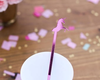 Unicorns are REAL! At least we think so ;) Packaged in sets of 6. First photo shown in mirrored pink. Get your whisical themed party, event or wedding started with fairytales in mind! These adorable unicorn swizzle sticks are the perfect way to add that special touch of magic to your event! The attention is in the details and adding a little flair to your drinks is sure to make for memorable decor and a fairytale evening! Most of our drink stirrers run just a little over 6 inches in height depending on design (all of our drink stirrers are between 5inches-5 1/2 inches in height plus roughly 1inch for top design). If you need them a specific height, our drink stirrers can be made taller or shorter for custom orders easily. :) First photo credit: Photography: Photography by Seneca | Event Planning: Patchwork Planning | Rentals: Forget Me Not Rentals Please note that all mirrored acrylics have gray backings. Made in San Diego, CA 100% Made in the USA! Please note, one thing these babes are not ...TOYS! Please keep away from those adorable children of yours! Other than that, have fun and get ready to add some adorable magic to your party or event! This is what dreams are made of!!! Made with Shatterproof Acrylic ****COLORS**** More to come! Please note: Colors may vary on your computer screen and/or electronic devices such as cell phones. Don't see a color you like, please message us and we might just have it! If not? We can try to get you exactly what you are looking for! Custom Orders We love custom orders!!! Send us a message and we can chat about creating the perfect party necessity for your next event!