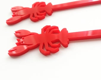 Lobster Drink Stirrer, Perfect Weddings, Wedding Shower, Nautical, Swizzle Sticks, Party, Summer, Acrylic, Laser Cut, Bar Decor, 6 Pack