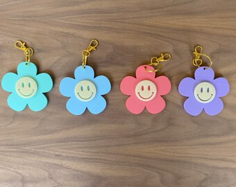 Smiley face flower pastel keychain,gift for teenager,preteen,BFF gift,acrylic key tag,groovy party theme,pastel smiley,millennial style,y2k