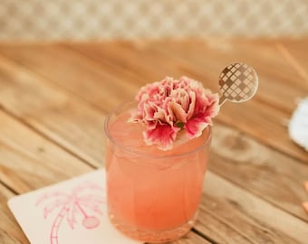 Disco drink stirrers now available in our glitter acrylic colors including iridescent glitter!!!! Priced for a pack of 50 stirrers. 1st-5th photos shown in mirrored silver, 6th photo in clear acrylic and 7th photo in silver glitter. These gorgeous laser-cut etched disco ball acrylic drink stirrers are absolutely stunning and create a memorable statement in your home or at any special event. Most of our drink stirrers run just a little over 6 inches in height depending on design (all of our drink stirrers are between 5inches-5 1/2 inches in height plus roughly 1inch for top design). If you need them a specific height, our drink stirrers can be made taller or shorter for custom orders easily. :) Don't worry about paint or wood chipping; these long lasting gorgeous acrylic swizzle sticks are made from the best quality and 100% made in USA. We design and make all of our items with our own machines and hands, no outsourcing here! First three photo credit: As seen in green wedding shoes Photographer: Whitney Darling Planner: The Penny Layne Please note that all mirrored acrylics have gray backings. Made in San Diego, CA 100% Made in the USA! Again, 100% Made in the USA! Please note, one thing these babes are not ...TOYS! Please keep away from those adorable children of yours! Other than that, have fun. Made with Shatterproof Acrylic ****COLORS**** More to come! Please note: Colors may vary on your computer screen and/or electronic devices such as cell phones. Don't see a color you like, please message us and we might just have it! If not? We can try to get you exactly what you are looking for! Custom Orders We love custom orders!!! Send us a message and we can chat about creating the perfect party necessity for your next event!