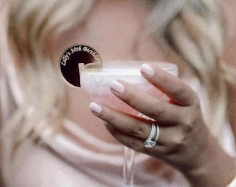 Personalized Stemless Stirrers are here!! JUST ADDED: MIRRORED ROSE GOLD These gorgeous laser-cut etched personalized acrylic stemless card drink stirrers are absolutely stunning and create a memorable statement in your home or at any special event and serve as brilliant favors. Your wedding or event will be unforgettable with special details that leave your guests in awe. Our custom and personalized laser cut etched acrylic stemless card stir sticks can be placed on the rim of almost any glass of welcoming champagne to greet guests, placed along with your table settings for each guest, used as table décor, photo props and so much more for a wedding or any special occasion. Not to mention, they are the best way to dress up any drink! ;) Custom Etched Acrylic Stemless Card Drink Stirrers If you want to order these as escort cards or place cards, please order from our listing below: https://www.etsy.com/listing/717580778/stemless-escort-card-drink-stirrers | How To Order | 1. Select the color 2. Select Quantity (no min. no max) 4. State the text you'd like in the "Personalization Box" ***After the order is placed and before we go into production, we'll send over a digital mockup for your approval. **Want a different shape of stirrer? Not a problem! Just send us a message and we can go from there! ***Size*** 1.75" Diameter (Can be customized to be larger, message before ordering if you'd like a custom size) Our personalized etched acrylic stemless card drink stirrers will fit on the rim of a wide variety of champagne flutes and glassware of all shapes and sizes including shot glasses. Don't worry about paint or wood chipping; these long lasting gorgeous acrylic stemless swizzle sticks are made from the best quality and 100% made in USA. We design and make all of our items with our own machines and hands, no outsourcing here! Please note that all mirrored acrylics have grey backings. Made in San Diego, CA 100% Made in the USA! Again, 100% Made in the USA! Please note, one thing these babes are not ...TOYS! Please keep away from those adorable children of yours! Other than that, have fun. Made with Shatterproof Acrylic ****COLORS**** More to come! Please note: Colors may vary on your computer screen and/or electronic devices such as cell phones. Don't see a color you like, please message us and we might just have it! If not? We can try to get you exactly what you are looking for! Custom Orders We love custom orders!!! Send us a message and we can chat about creating the perfect party necessity for your next event!