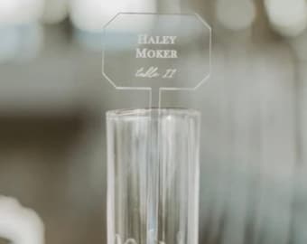50 custom acrylic escort cards etched - acrylic drink stirrers - champagne stirrer custom laser cut escort cards / place cards