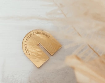 Luxury Drink Tags, Place Cards,Acrylic Drink Tags, Wedding Rehearsal, Dinner for Wedding Party, Event Decor, Name Drink Marker, Drink hang These gorgeous laser-cut etched personalized acrylic stemless card drink stirrers are absolutely stunning and create a memorable statement in your home or at any special event and serve as brilliant favors. Your wedding or event will be unforgettable with special details that leave your guests in awe. Our custom and personalized laser cut etched arched acrylic stemless card stir sticks can be placed on the rim of almost any glass of welcoming champagne to greet guests, placed along with your table settings for each guest, used as table décor, photo props and so much more for a wedding or any special occasion. Not to mention, they are the best way to dress up any drink! ;) If you need a specific amount of drink tags not shown/available, just let us know and we'll add it for you. Drink tag, Arched Custom Etched Acrylic Stemless Card Drink Stirrers If you want to order these as escort cards or place cards, please order from our listing below: https://www.etsy.com/listing/717580778/stemless-escort-card-drink-stirrers | How To Order | 1. Select the color 2. Select Quantity (no min. no max) 4. State the text you'd like in the "Personalization Box" -No Minimum Order (all same color and text. Maximum words of 5) ***After the order is placed and before we go into production, we'll send over a digital mockup for your approval. **Want a different shape of stirrer, font? Not a problem! Just send us a message and we can go from there! Our personalized etched acrylic stemless escort card drink stirrers will fit on the rim of a wide variety of champagne flutes and glassware of all shapes and sizes including shot glasses. Don't worry about paint or wood chipping on these drink tags; these long lasting gorgeous acrylic stemless escort card swizzle sticks are made from the best quality and 100% made in USA. We design and make all of our items with our own machines and hands, no outsourcing here! Please note that all mirrored acrylics have grey backings. Made in San Diego, CA ***Size*** 1.75" Diameter (Can be customized to be larger or a different drink tag shape, message before ordering if you'd like a custom size) Acrylic Drink Markers • Custom • Circle Drink Hang • Drink Accessory • Wedding Favor • Drink Stirrer • Acrylic Name • Custom Place Card Please note, one thing these babes are not ...TOYS! Please keep away from those adorable children of yours! Other than that, have fun. Drink tags Made with Shatterproof Acrylic ****COLORS**** More to come! Please note: Colors may vary on your computer screen and/or electronic devices such as cell phones. Don't see a color you like, please message us and we might just have it! If not? We can try to get you exactly what you are looking for! Custom Orders We love custom orders!!! Send us a message and we can chat about creating the perfect party necessity for your next event! 2nd photo credit: One and Only Bridal