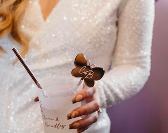 Priced for 50 single butterfly custom stirrer at our bulk discount rates, for bulk orders please order directly from this listing and select your desired quantity as we now have extended bulk rates for all amounts! :) Shown in mirrored Rose gold These gorgeous laser-cut etched personalized butterfly acrylic custom logo, initial, or text drink stirrers are absolutely stunning and create a memorable statement at any special event and serve as brilliant favors or decor placed in champagne glasses for that epic champagne wall of your dreams. Your wedding, birthday, bridal shower or event will be unforgettable with special details that leave your guests in awe. Our custom and personalized laser cut etched acrylic butterfly stir sticks can be placed in a glass of welcoming champagne or any other cocktail, or beverage cup to greet guests, placed along with your table settings for each guest, used as table décor, photo props and so much more for a wedding, birthday, shower or any special occasion. Not to mention, they are the best way to dress up any drink as all drink stirrers are! ;) Wonderful guest favors that serve as the best decor ever~ Butterfly garden birthday party guests will be in awe as well! Custom Etched butterfly Drink Stirrers can be personalized with any logo, initial, preferred design, phrase etc. ****Please note, each escort stirrer is for one design only***** For butterfly escort stirrers with individual guest names, please see below: https://www.etsy.com/listing/950820718/acrylic-butterfly-escort-cardschampagne Ordering Instructions: -Please select color -Then select quantity (50 stirrer per order at our bulk discounted rates) -In the "notes to seller section section" include any design details/text/image etc you would like. After your order is purchased and before your order is completed, we'll send over a digital proof for your approval. In the personalized box you can state your design as well as date needed in hand -Add to cart. -Finally, simply choose your payment preference and checkout! :) **Want a different shape of stirrer? Not a problem! Just send us a message, we can customize for you for no additional charge! First photo credit: Krae Films Our personalized etched acrylic butterfly logo or initial drink stirrers Measurements: The top "face" of the butterfly drink stirrer is 1 1/2 inches in height and 2 inches in width: stake (stirrer) is a safe 3 inches long to ensure the item sits perfectly in flute. If you need them a specific height, our drink stirrers can be made taller or shorter for custom orders easily. :) Don't worry about paint or wood chipping; these long lasting gorgeous acrylic swizzle sticks are made from the best quality and 100% made in USA. We design and make all of our items with our own machines and hands, no outsourcing here! Butterfly Custom Logo Stirrer,Champagne Glasses,champagne wall,bridal shower,rose gold,Place Card,guest favors,wedding decor,garden birthday Please note that all mirrored acrylics have gray backings, this is what makes the front actually mirrored/reflective. Made in San Diego, CA 100% Made in the USA! Again, 100% Made in the USA! Please note, one thing these babes are not ...TOYS! Please keep out of kid's mouths! Other than that, have fun. Made with Shatterproof Acrylic ****COLORS**** More to come! Please note: Colors may vary on your computer screen and/or electronic devices such as cell phones. Don't see a color you like, please message us and we might just have it! If not? We can try to get you exactly what you are looking for! Custom Orders We love custom orders!!! Send us a message and we can chat about creating the perfect party necessity for your next event!