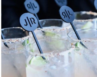 Classic wedding decor meets modern and minimalist wedding trends with these initial drink stirrers. Bulk package: 50 Per Pack Don't need this many? Not a problem! Please visit our smaller listing linked below :) https://www.etsy.com/listing/568484199/modern-initial-swizzle-stickswedding Shown in Black acrylic These gorgeous laser-cut acrylic initial drink stirrers can be customized with first or last name initials (2 letters total), bride and grooms initials, and so much more. These personalized initial stirrers are absolutely stunning and create a memorable statement in your home or at any special event. With a modern and edgy feel, we took a twist on the classic initial or monogram decor. Our custom and personalized laser cut acrylic stir sticks can be placed along with your table settings for each guest, used as table décor, photo props, and so much more for a wedding or any special occasion. Not to mention, they are the best way to dress up any drink! ;) Custom Initial Drink Stirrers: Letters and middle line are cutout of acrylic Ordering Instructions: Please select color of choice. Add to cart. In the "notes section" include up to 2 initials. Finally, simply choose your payment preference and checkout! :) All stirrers come with font shown in photos. If you are interested in a different font or design, please contact us for more info. :) Have a logo or preferred design? Custom sizes and designs available, please inquire if interested. Most of our drink stirrers run just a little over 6 inches in height depending on design (all of our drink stirrers are between 5inches-5 1/2 inches in height plus roughly 1inch for top design). If you need them a specific height, our drink stirrers can be made taller or shorter for custom orders easily. :) Don't worry about paint or wood chipping; these long lasting gorgeous acrylic swizzle sticks are made from the best quality and 100% made in USA. We design and make all of our items with our own machines and hands, no outsourcing here! First 4 photos by: Dark Room Photo Please note that all mirrored acrylics have gray backings. Made in San Diego, CA Custom Drink stirrers for wedding,Cocktail stirrer,signature drinks,acrylic swizzle stick,initial Stirrer,Cocktail Stick,engagement party,50 Please note, one thing these babes are not ...TOYS! Please keep away from those adorable children of yours! Other than that, have fun. Made with Shatterproof Acrylic Wedding Drink stirrers, Cocktail stirrers, custom Stirrers, Drink Stirrers, initial Drink Stirrers, Cocktail Stick, Party Sticks, 50pack ****COLORS**** More to come! Please note: Colors may vary on your computer screen and/or electronic devices such as cell phones. Don't see a color you like, please message us and we might just have it! If not? We can try to get you exactly what you are looking for! Custom Orders We love custom orders!!! Send us a message and we can chat about creating the perfect party necessity for your next event! First four photo credit: Dark Room Photo